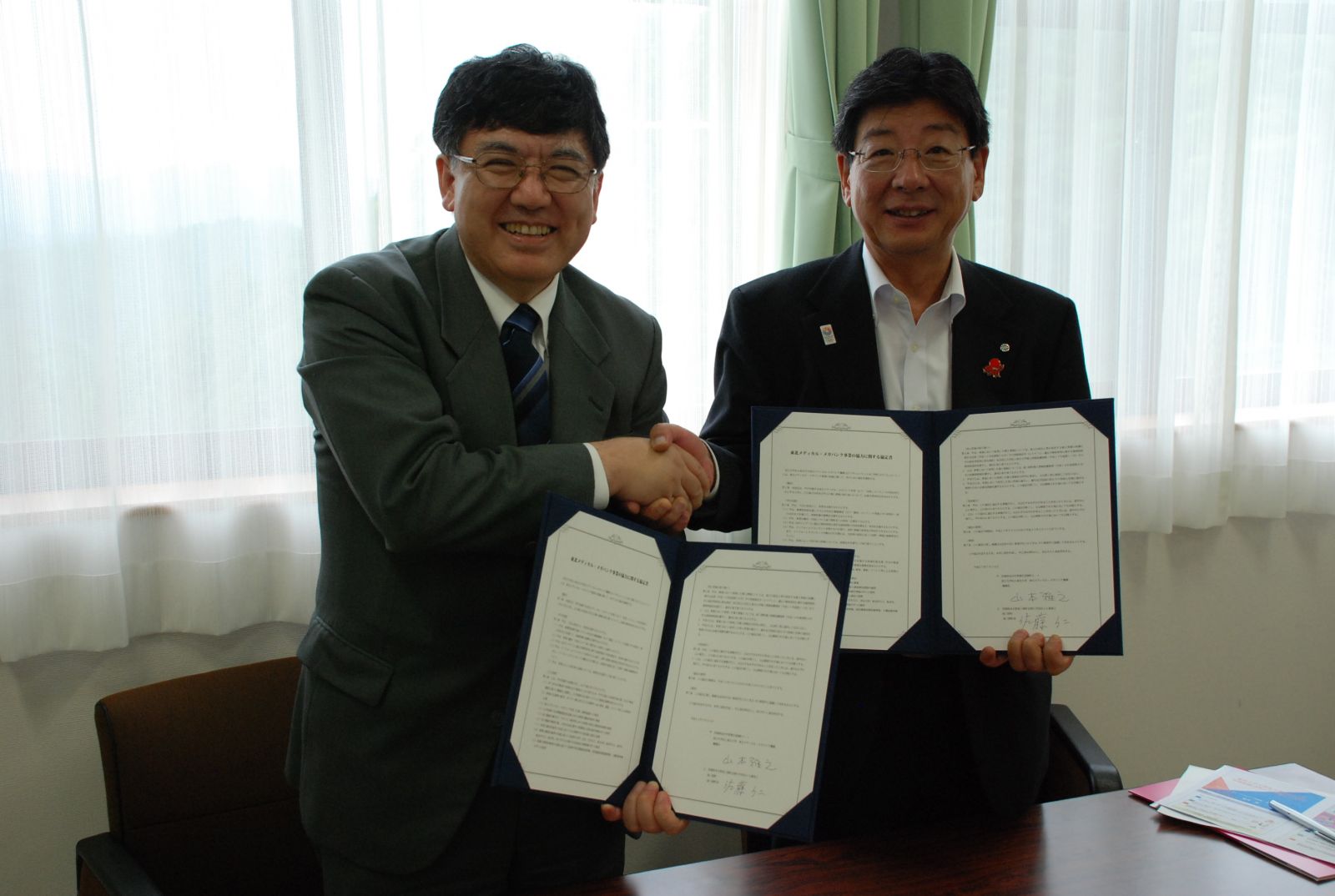 宮城県南三陸町と東北大学東北メディカル・メガバンク機構は、東日本大震災被災地域の医療復興と未来型医療の構築のため、南三陸町における東北メディカル・メガバンク事業実施に関し、協力協定を締結しました。 協定は、平成25年7月30日に南三陸町役場において署名され発効しました。