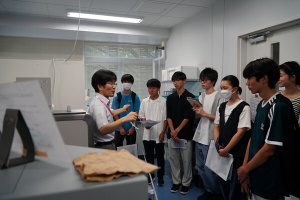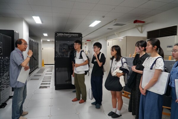 当機構は、ゲノム医科学施設をめぐる見学ツアーを開催しました。本ツアーでは、事業や施設の概要を紹介しながら、バイオバンク設備、シークエンス解析設備、スーパーコンピュータ室をご案内しました。参加した高校生からは、設備や研究成果に対する質問がなされ、熱心にメモを取る姿も見受けられました。暑い中ご参加いただき、どうもありがとうございました。