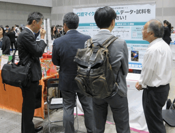 ブースでは、TMM計画の紹介とこれまでに収集した口腔内試料(唾液・舌苔・歯垢)や歯ごとのデータ、口腔内マイクロバイオームデータの利活用について説明し、具体的な利用方法などの案内を行いました。