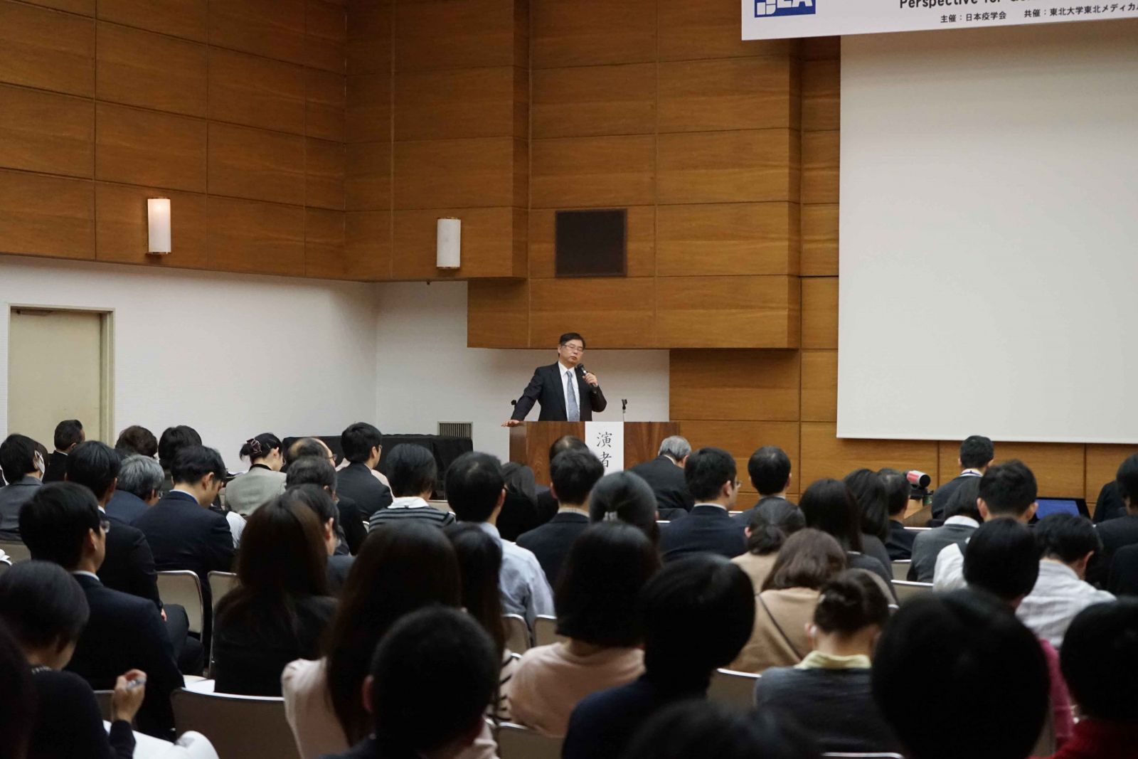 第2部では、理化学研究所統合生命医科学研究センター・久保充明副センター長による講演『オーダーメイド医療実現化プロジェクトと個別化医療・個別化予防』、国立がんセンターがん予防・検診研究センター・津金昌一郎センター長による講演『ゲノムコホートとバイオバンク:国立がん研究センターの取り組み』、東北大学災害科学国際研究所災害公衆衛生学分野・栗山進一教授(ToMMo三世代コホート室長)による講演『東北メディカル・メガバンクにおけるゲノムコホートとバイオバンク』がそれぞれ行われました。