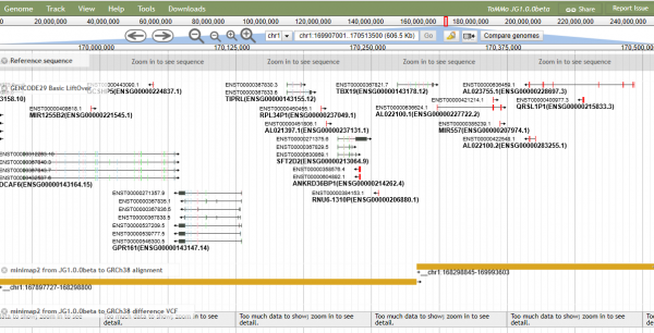 ToMMoでは、日本人の基準ゲノム配列を作成しバージョンアップを重ねています。今もっとも新しいバージョンは2019年2月に発表した「JG1」です。何回かバージョンアップをしているのになぜJG”1”なのでしょうか? JG1では、初めて国際基準ゲノムに一切頼らず複数の解析技術を駆使して、日本人の全ゲノム配列を決定しました。配列の決定方法を変更したJG1はそれまでのバージョンより数段、精密かつ正確になったのです。